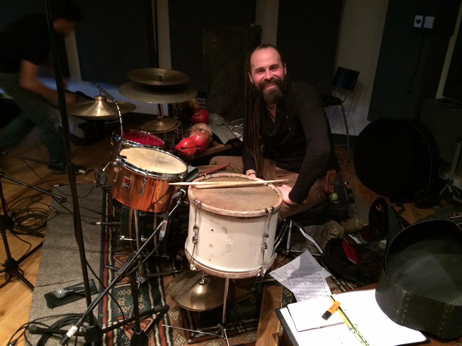 Hear him tell truths that are forgotten by educated men, on skin and wood, bone and metal. Hear him writhe like a mechanical sea monster beneath the calm seas of the Black Sheikhs. Hear him, in short, play the drums on our latest studio masterpiece.